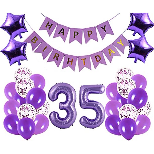 35th Birthday Party Decorations Kit Happy Birthday Banner With Number 35 Birthday Balloons For Birthday Party Supplies 35th Purple Birthday Party Pack Walmart Com