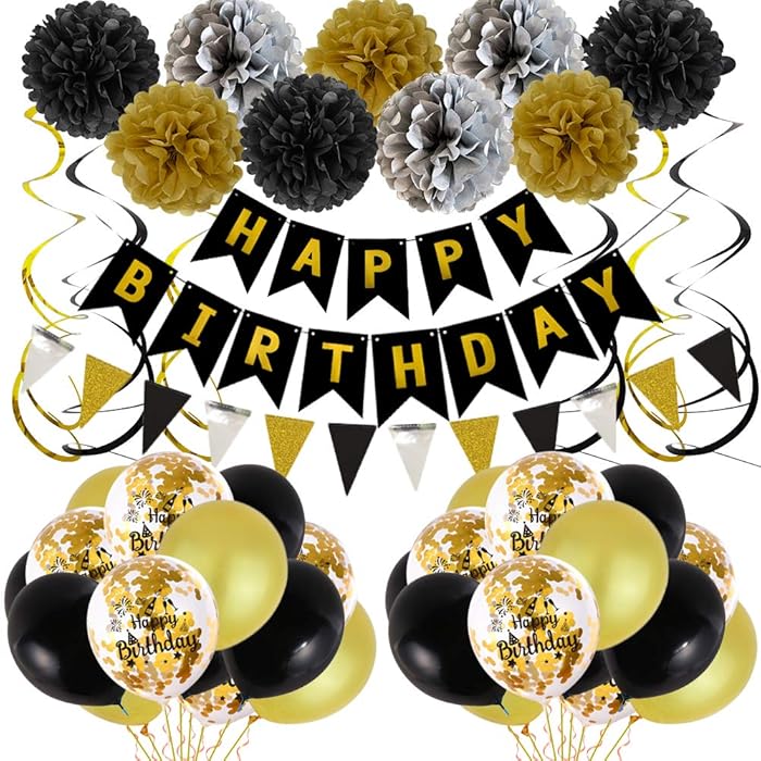 Buy Domila Birthday Decorations For Men Black Gold Birthday Party Decorations For Women Happy Birthday Banner For Party Decor 16th 18th 20th 25th 30th 35th 40th 50th 60th 70th Online At Desertcart
