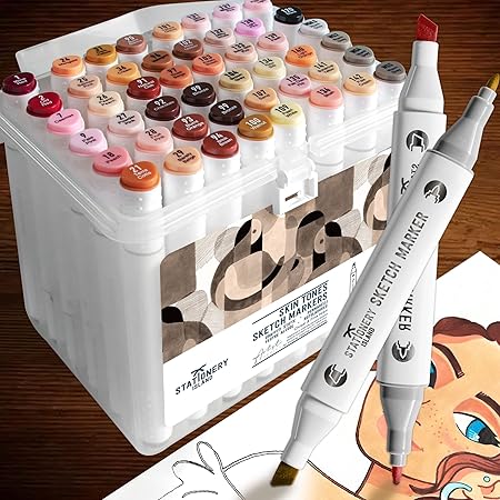 Stationery Island Alcohol Markers Set Of 48 Skin Tone Art Marker Pen Dual Tips Permanent Drawing Markers For Adults And Kids Highlighting Design Sketch Illustration Graphic Comic Anime Manga Amazon Co Uk Stationery